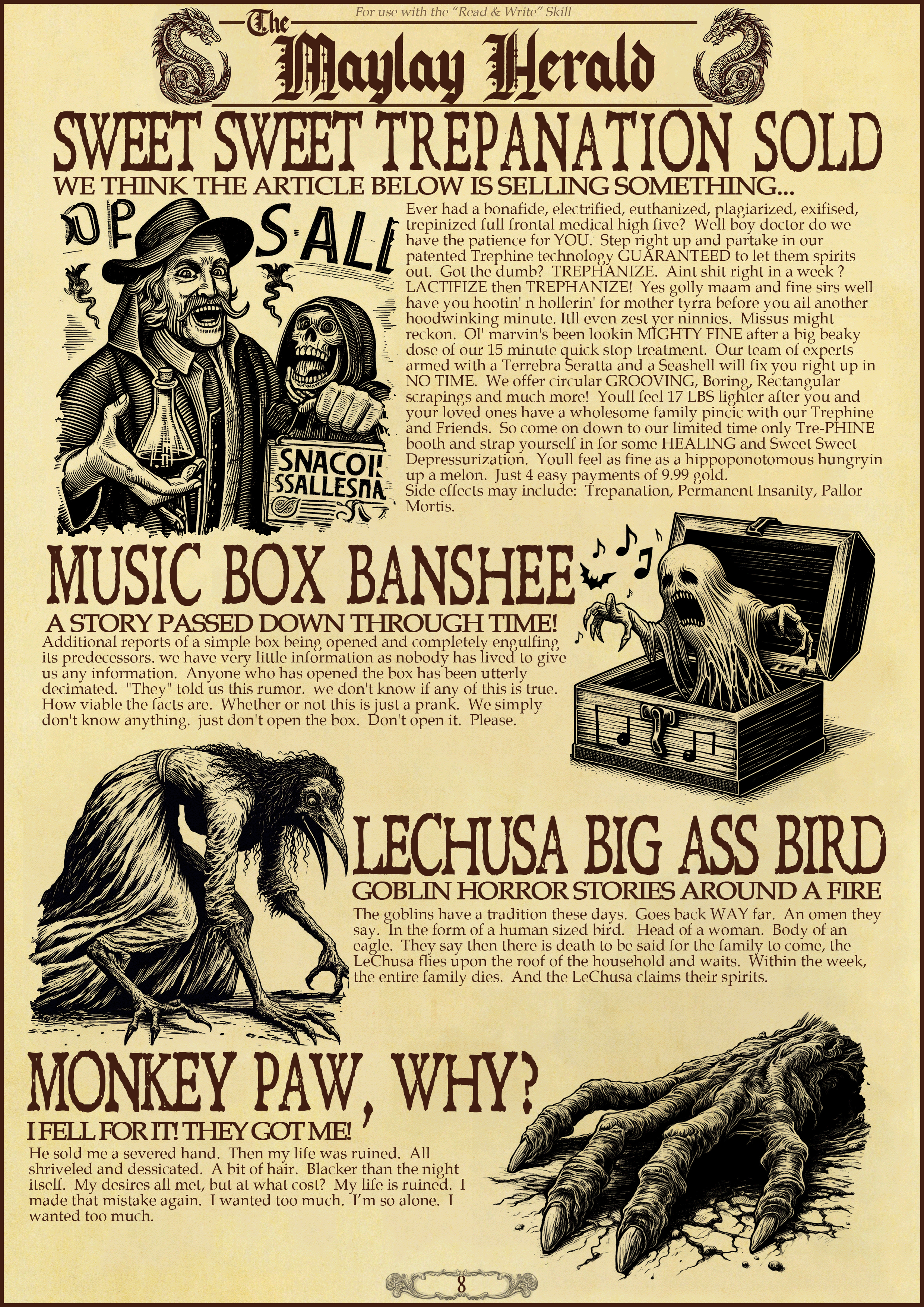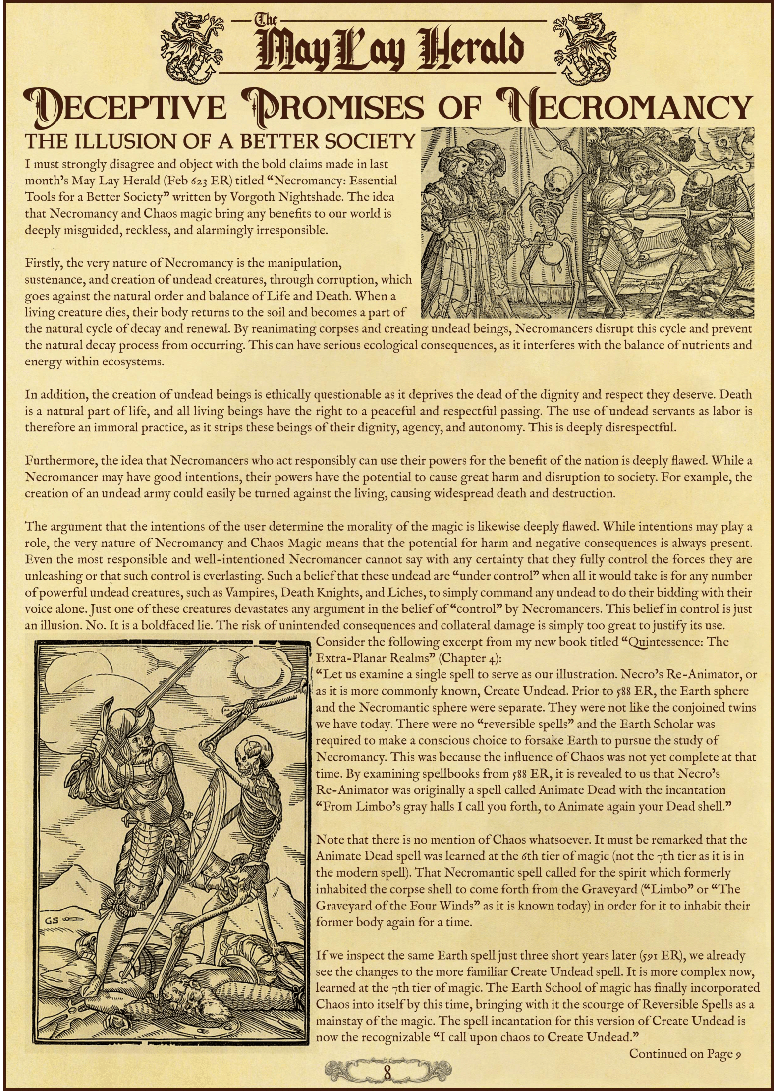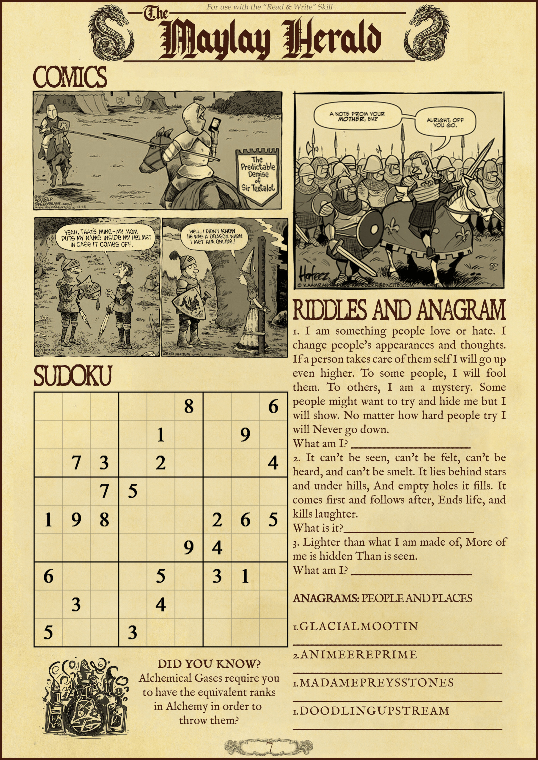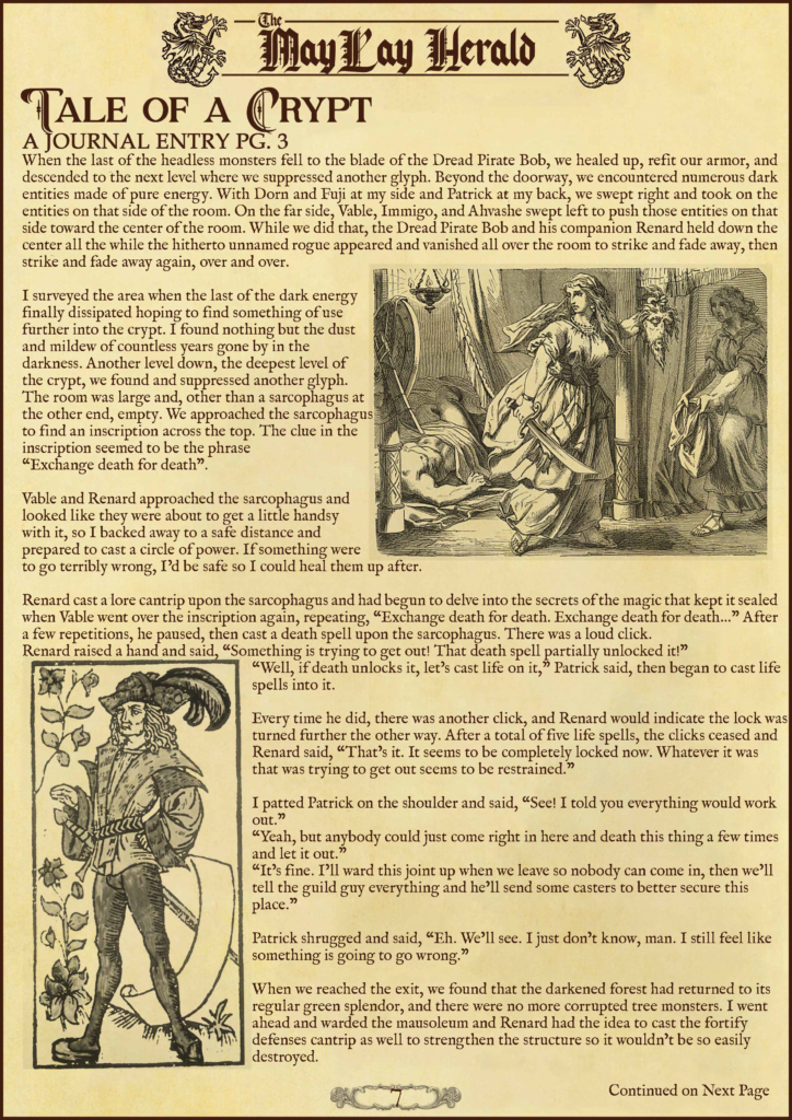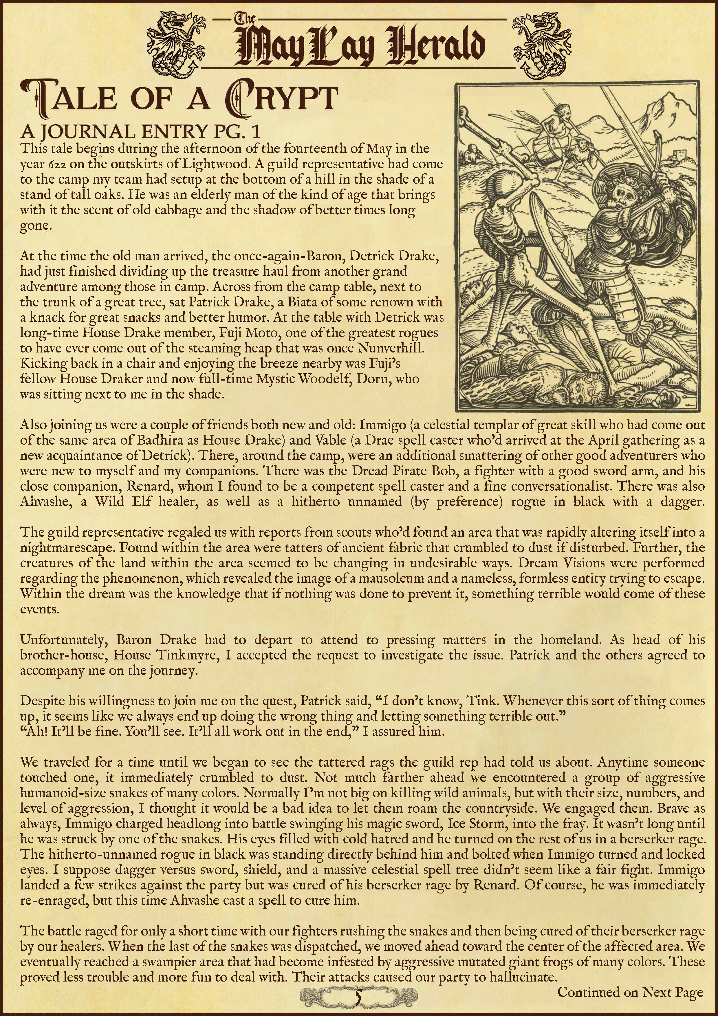 The issues below are the official Mearian Empire Newsletter that is published before every Adventurer Market Gathering. These provide exclusive information that may or may not be necessary for the events following. Be sure to read through them as they provide details that could turn the tide in the battles before you!